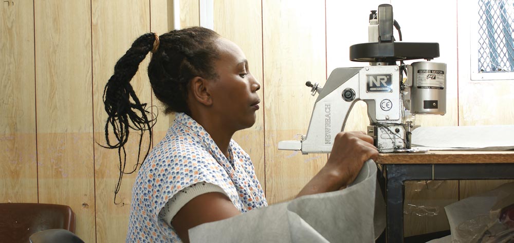 Silokotho owner-operator Khanyisile Kunene heads up a team of energetic seamstresses who create the polypropylene bags in which Beier Envirotec filter bags are packed.